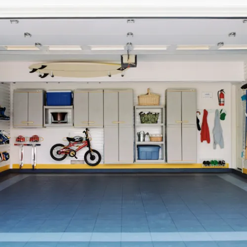 Yes! We offer a range of custom storage options, including overhead racks, shelving, cabinets, and workbenches, to maximize the storage capacity of your garage.
